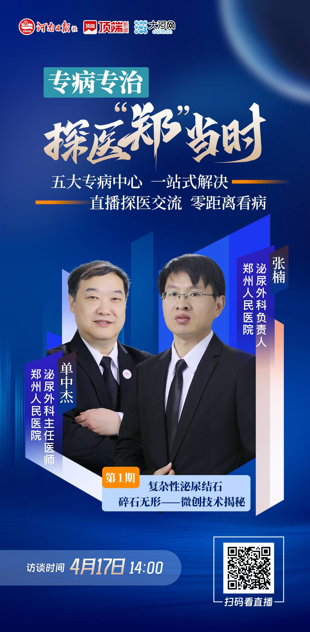【编者按】郑医五大专病中心究竟有何独门绝技?即日起,大河网联合郑州人民医院推出《专病专治·探医“郑”当时》系列直播,带您走进郑医复杂性泌尿结石、疑难性肠病、肝移植、脑病、腹壁修复中心等五大专病中心,零距离揭秘微创“碎石”如何化险为夷、破解消化难题的“肠”久之计、见证生命接力的希望之光、守护大脑生命中枢,以及探寻腹壁修复如何重塑自信,一站式扫除病痛困扰。