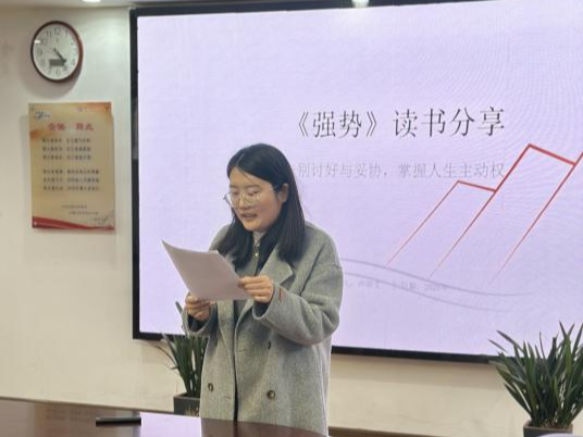 卢华文老师分享了《强势》的阅读感悟,卢老师强调《强势》不是一本教我们“强硬行事”的书,而是一本引导我们“坚守边界”的书。在强势的内核里,我们看到了自我的主张、沟通的力量,也看到了拒绝内耗的底气与勇气。从书中习得自信处事的智慧。作为教师,我们要坚定立场,理性沟通;守护职业边界,从容应对教育工作中的各类挑战。