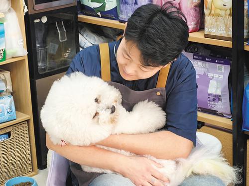 叁 焦江丽对店里的每只宠物都了如指掌,光听叫声、闻气味,就能分辨出是哪只“毛孩子”。她养的比熊犬三代同堂,大闺女、二闺女还有小外孙,都成了陪伴她的“家人”。