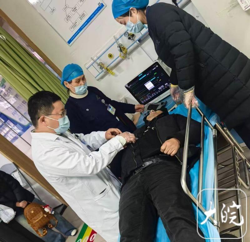 民警立即驾驶警车将患者送往就近的医院救治,安抚货车司机情绪,在确保安全的前提下,民警仅用时6分钟就将患者送到阜阳市第二人民医院,并协助其办理入院登记手续。