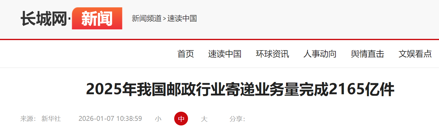 “2025年我国邮政行业寄递业务量完成2165亿件” 的相关文章