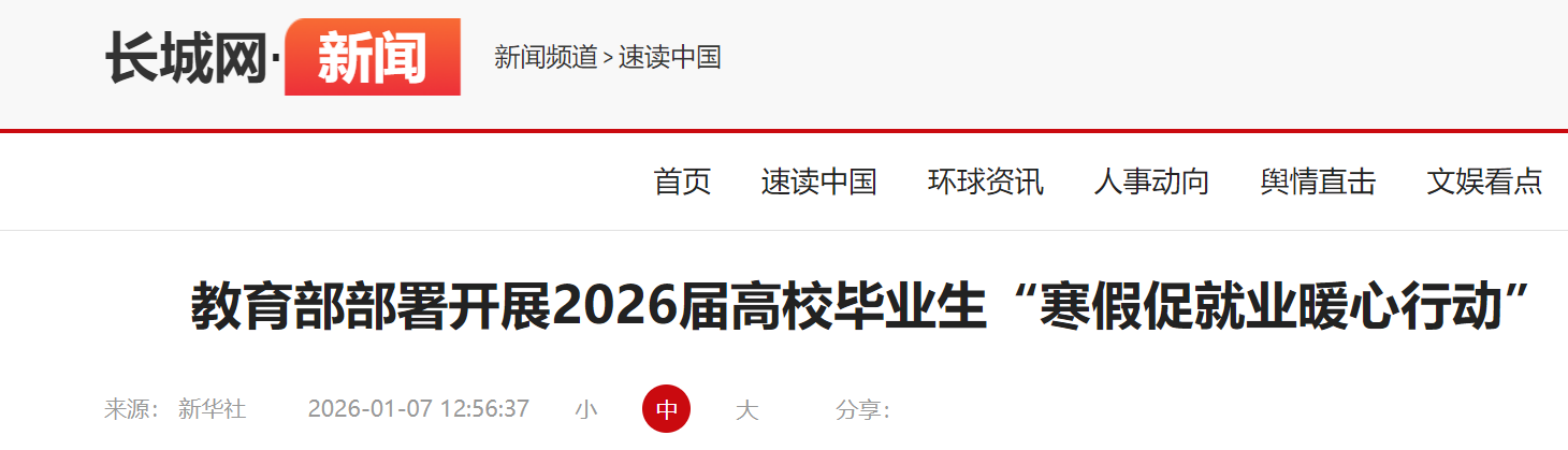 教育部部署开展2026届高校毕业生“寒假促就业暖心行动”