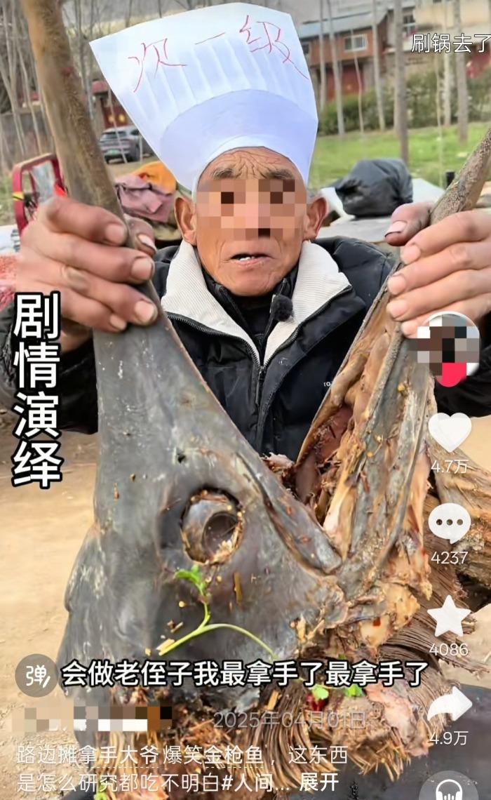 视频发布后,引发热议,也有网民质疑这一说法的真实性。记者注意到,早在数月前,“‘拿手大爷’因镇政府下文件不能做金枪鱼”的说法就在网上流传开来,热度颇高,但未见官方渠道发布相关信息。