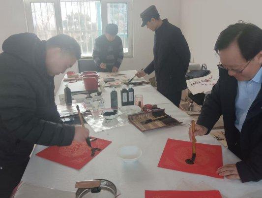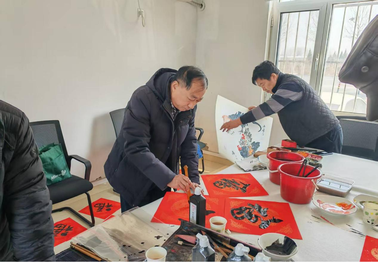 鲁网1月26日讯(记者 王玉龙)1月24日,文化进社区活动走进潍坊市寒亭区徐家楼农贸市场,中国作家协会会员,山东省报告文学学会理事,寒亭区作家协会名誉主席黄旭升;中国作家协会会员,潍坊市文联签约作家,寒亭区作家协会主席胡海波;潍坊市诗词学会常务副会长管恩峰;寒亭区书法家协会常务副主席滕会军;中国国画艺术研究院潍坊分院副院长徐海滨、王兰溪等参加,现场为商户和市民书写福字、春联,将新春祝福送到百姓身边。