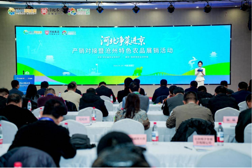 为深入贯彻落实乡村振兴战略,推动京津冀农业协同发展,提升河北农产品在京津地区的品牌影响力和市场竞争力,2026年1月23日,由河北省农业农村厅主办、沧州市农业农村局承办的“河北净菜进京产销对接暨沧州特色农品展销活动”在北京新发地农产品博览中心举办。活动采用“产销推介+精准对接+专题研讨”形式,进一步搭建河北农业与北京市场高效联通桥梁。