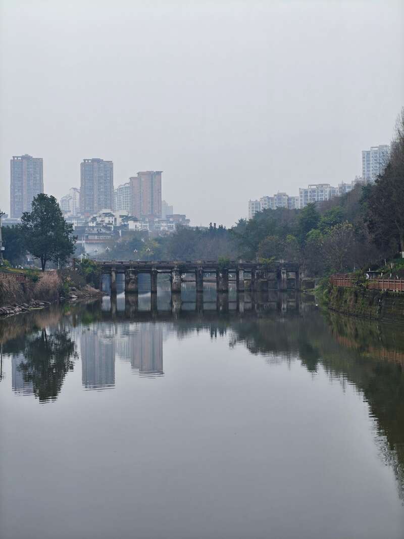 桃东大桥七孔横跨水面,古桥倒影与飞瀑流水相映。重庆移通学院陈媛/摄