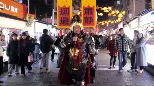 夜幕下的顾府街人流如织,身着明代甲胄的“顾成将军”正穿越六百多年的时光,来到顾府街,与市民和游客热情互动。