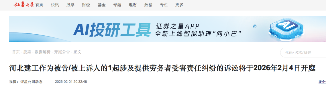 河北建工集团作为被告,涉及劳务者受害责任纠纷诉讼2月4日开庭