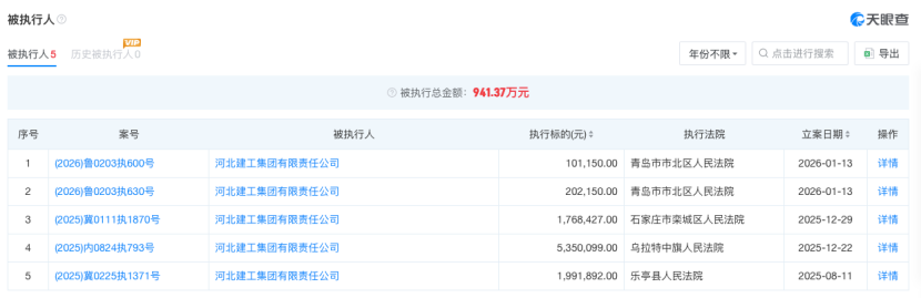 此外,天眼查显示,河北建工集团有限责任公司是省管国企,目前是被执行人,被执行总金额941.37万元。