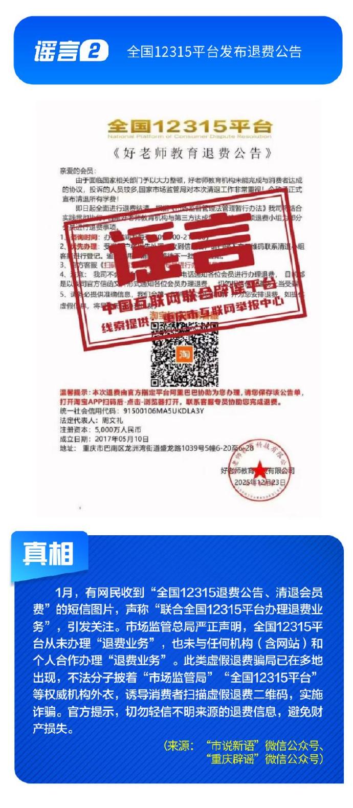 谣言2:全国12315平台发布退费公告;