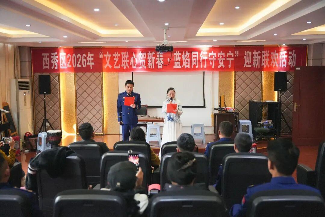 活动在热情洋溢的开场主持中启幕。西秀区消防救援大队新安大道消防救援站站长唐代科致辞,向长期以来关心支持消防工作的文艺界同仁表示诚挚感谢,同时为全体消防指战员送上新春祝福,勉励大家坚守初心使命、续写守护平安新篇章。