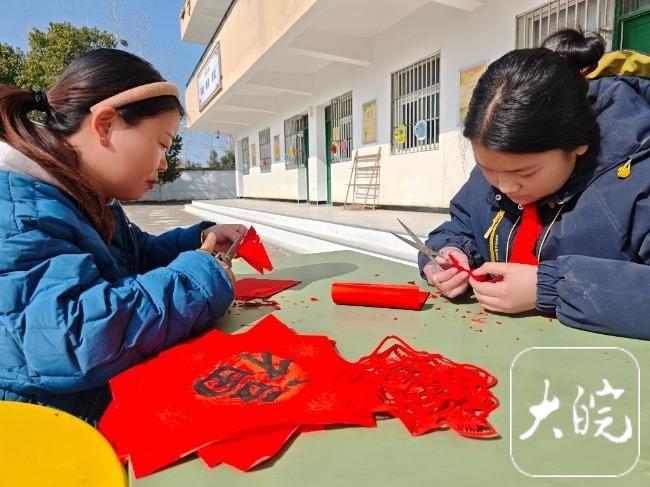 大皖新闻讯 2月4日上午,合肥市长丰县费岗小学正组织孩子们现场书写福字、剪窗花,将它们送给学生家长、附近邻居作为新年祝福。这是学校剪纸社团成立半年来,第一次开展春节活动,五年级的许梦洁便是其中一员。这个热爱剪纸的留守女孩,平时用废报纸练剪纸,如今,已经剪得有模有样。这个新年,她许下一个心愿,为剪纸社团添上一批新的剪纸材料,来年,她想和同学们一起剪出更多精美的好作品。