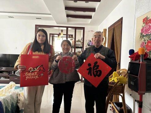 活动中,社区网格员提前准备好春联礼包——大红的春联笔墨飘香,烫金的福字熠熠生辉,搭配着寓意吉祥的窗花,每一份礼包都承载着社区对居民的美好期许。网格员们化身“送福使者”,怀揣着红彤彤的春联礼包,到辖区各居民小区走访送福。“阿姨,开门呀,我们给您送春联来啦!”叩响王阿姨的家门,熟悉的问候带来了融融暖意。王阿姨看到网格员手中的礼包,脸上立刻绽开笑容:“每年你们都想着我,这春联一贴,家里立马就有年味儿了!”网格员们顺势搀扶着老人坐下,一边帮她展开春联,一边询问她的身体状况和生活需求,叮嘱她注意冬季保暖,有困难随时联系社区。临走时,王阿姨紧紧握着网格员的手,反复说着“谢谢你们,心里真暖”。遇到出门归来的居民,网格员们也会主动上前递上礼包,一句句“新春快乐”“万事如意”的祝福,让小区里都洋溢着喜庆祥和的氛围。