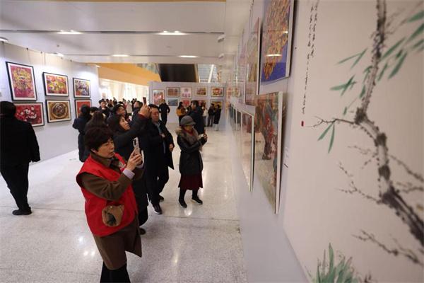 “大地流彩·信美乡村”村画展作为核心板块,汇聚全国近500幅农民画佳作,在滨州黄河三角洲交易中心及狮子刘村同步展出。展览设“片区建设”“脱贫攻坚”“九曲农韵”“中国农遗”“名家特邀”五大主题展区,通过农民画、剪纸等根植于乡土的群众艺术形式,生动展现新时代农民自信精神风貌与和美乡村发展成就。画展不仅丰富了农村文化产品供给,也通过艺术形式保护和传承农耕文明,呼应了中央一号文件中“深入实施文明乡风建设工程”的深刻要求。