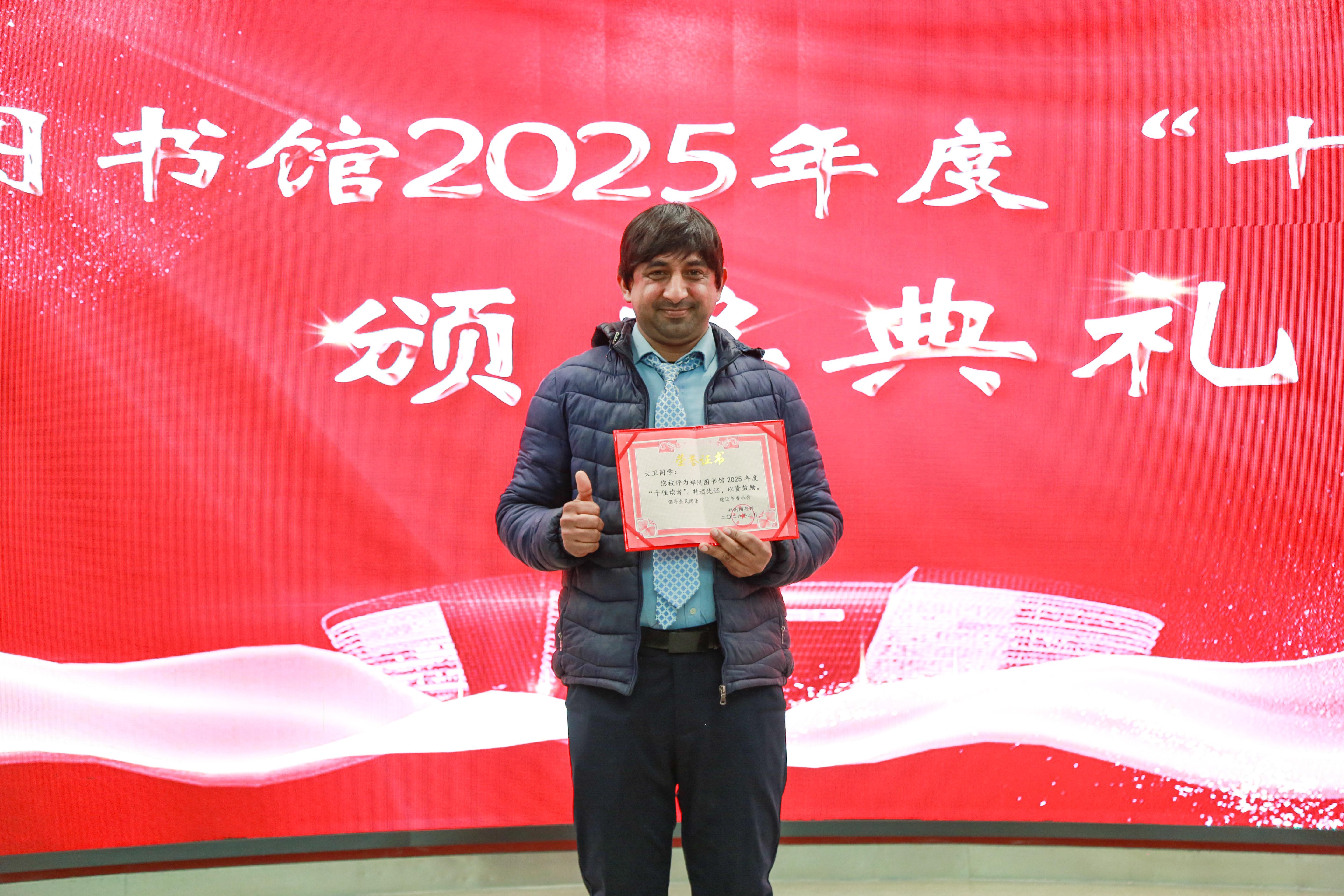 大河网讯(记者 杨佳欣)从城市书店到乡村书屋,从校园课堂到社区广场,书香浸润着河南的每一处角落,也让远渡重洋而来的外籍学子在阅读中找到了心灵的归属。2月7日,郑州图书馆2025年度“十佳读者”名单揭晓,其中一位外国人吸引了众人的目光——他叫大卫(Aamir Mahmood),来自巴基斯坦,已在河南这片土地上学习、生活了近十年。
