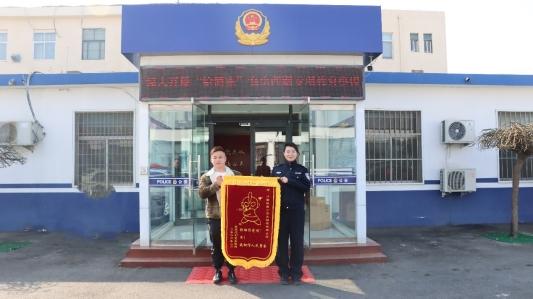 2月14日10时,旅客刘先生将一面锦旗送到聊城站派出所感谢民警帮其找回遗失的背包及笔记本电脑。