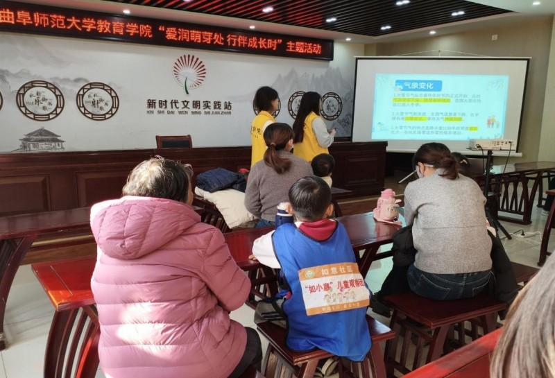 为提升儿童认知能力水平,传播大雪节气文化,激发儿童冬日创作灵感,曲阜师范大学教育学院“心芽向愿,妙启童知”实践队于2026年1月20日走进山东省济宁市曲阜市如意社区,围绕大雪节气,以“巧手塑雪景,创意乐无限”为主题开展系列趣味课堂与互动活动。