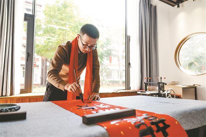 今年执笔的书法家杨炳龙,用“龙马精神驰万里海域,莺花岁月焕千重门庭”,横批“万象更新”写就鹭岛新气象;篆刻家陈思远,则以“日日寸进”入印,传递日有所进、岁有所成的美好祝愿。