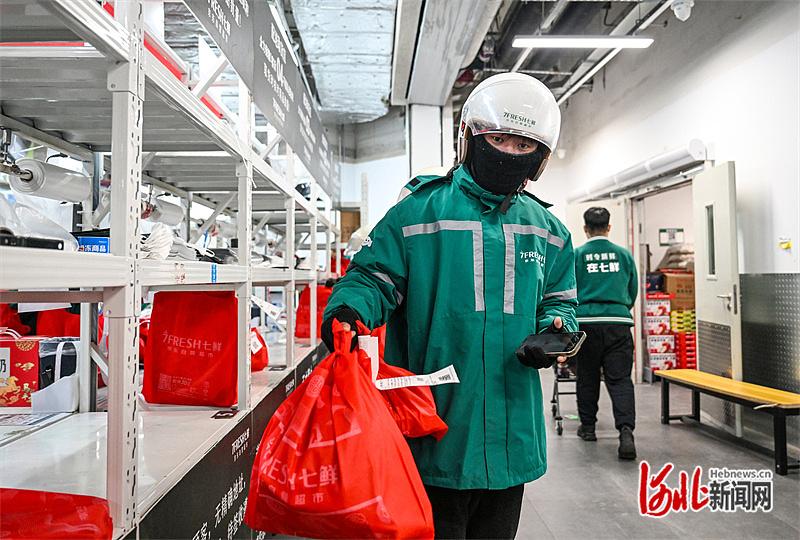 2月16日,京东七鲜卫星小店,张宇航准备配送订单。河北日报记者 李东宇摄