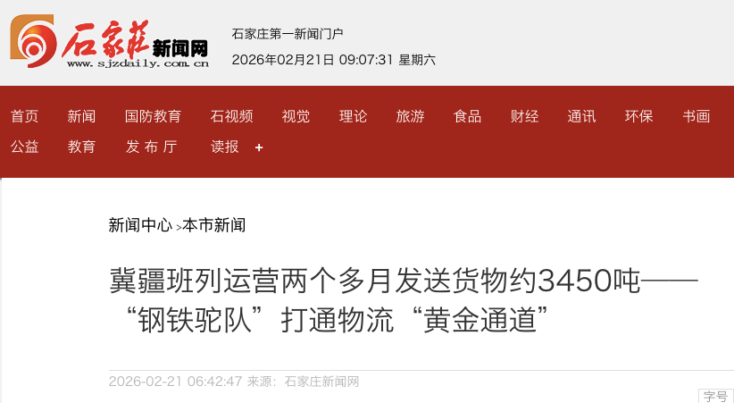 “冀疆班列的常态化开行,不仅填补了石家庄至乌鲁木齐方向铁路物流线路空白,更搭建起新疆特色产品与河北产业的互通桥梁,为冀新两地高质量发展提供了一条黄金物流大通道。”河北冀疆班列运输有限公司有关负责人说。