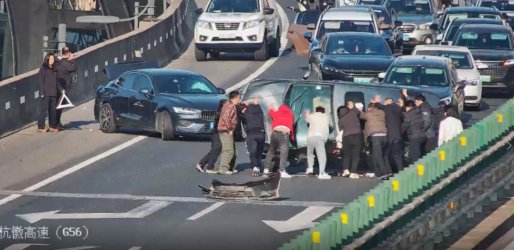 杭徽高速返程车流惊险一幕,十几个司机出手!监控记录下令人动容的4分钟