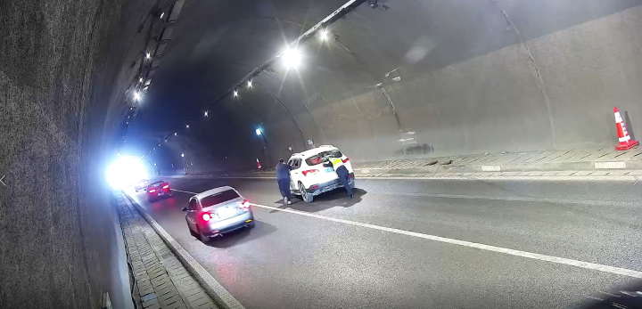 终于,在他们的共同努力下,事故车辆被成功推至隧道口的硬路肩,主线两车道完全打通。看着后方原本停滞的车流,在他们的指挥下有序地缓缓通过,他们悬着的心才放了下来。