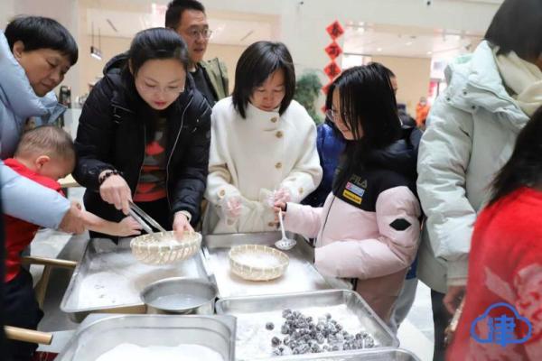 作为重头戏,“摇元宵”体验区排起长队——读者在工作人员指导下亲手摇晃笸箩,一颗颗圆润的元宵逐渐成形,寓意新的一年“圆圆满满”。