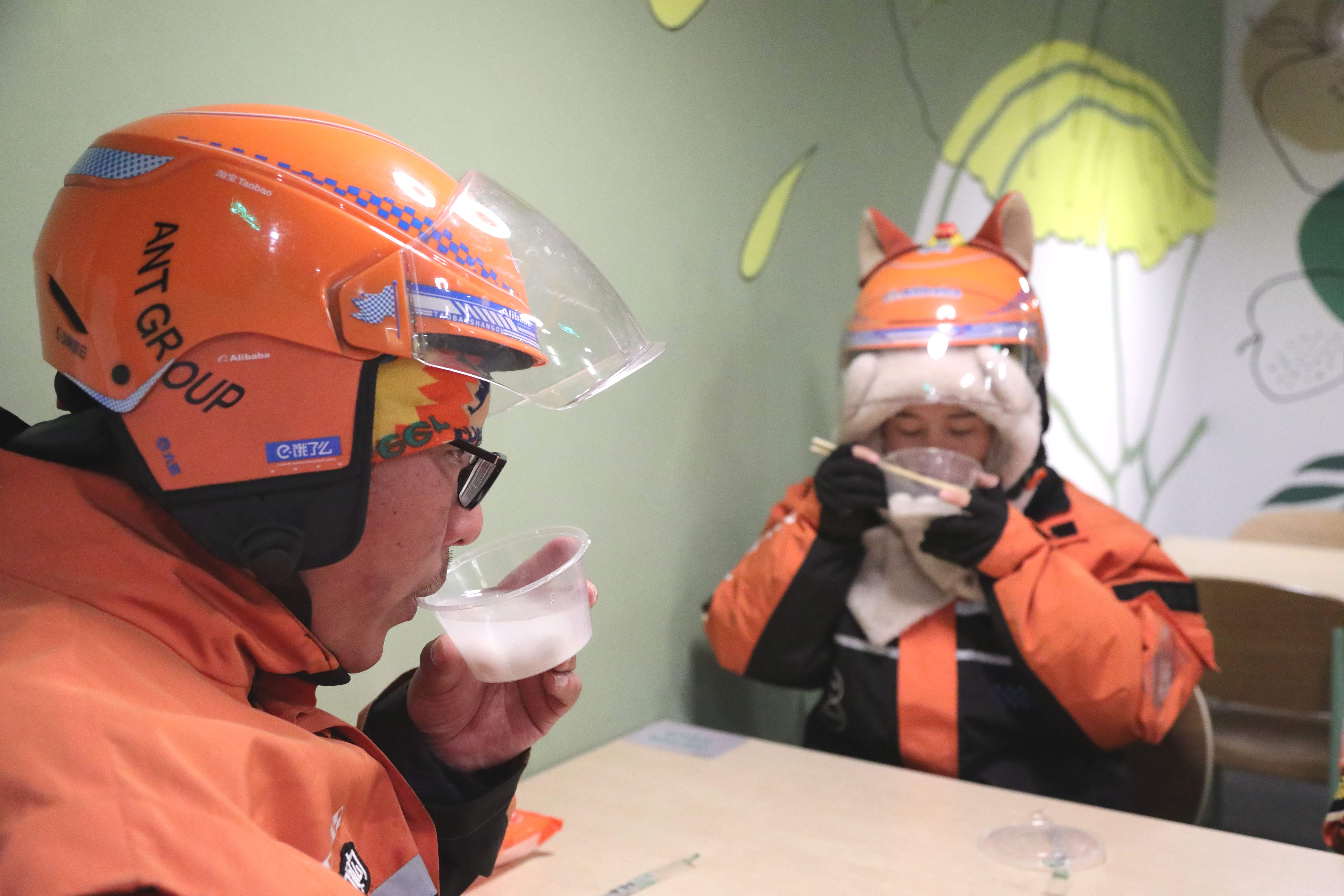 外卖员吃上了热气腾腾的元宵。董芳忠/摄