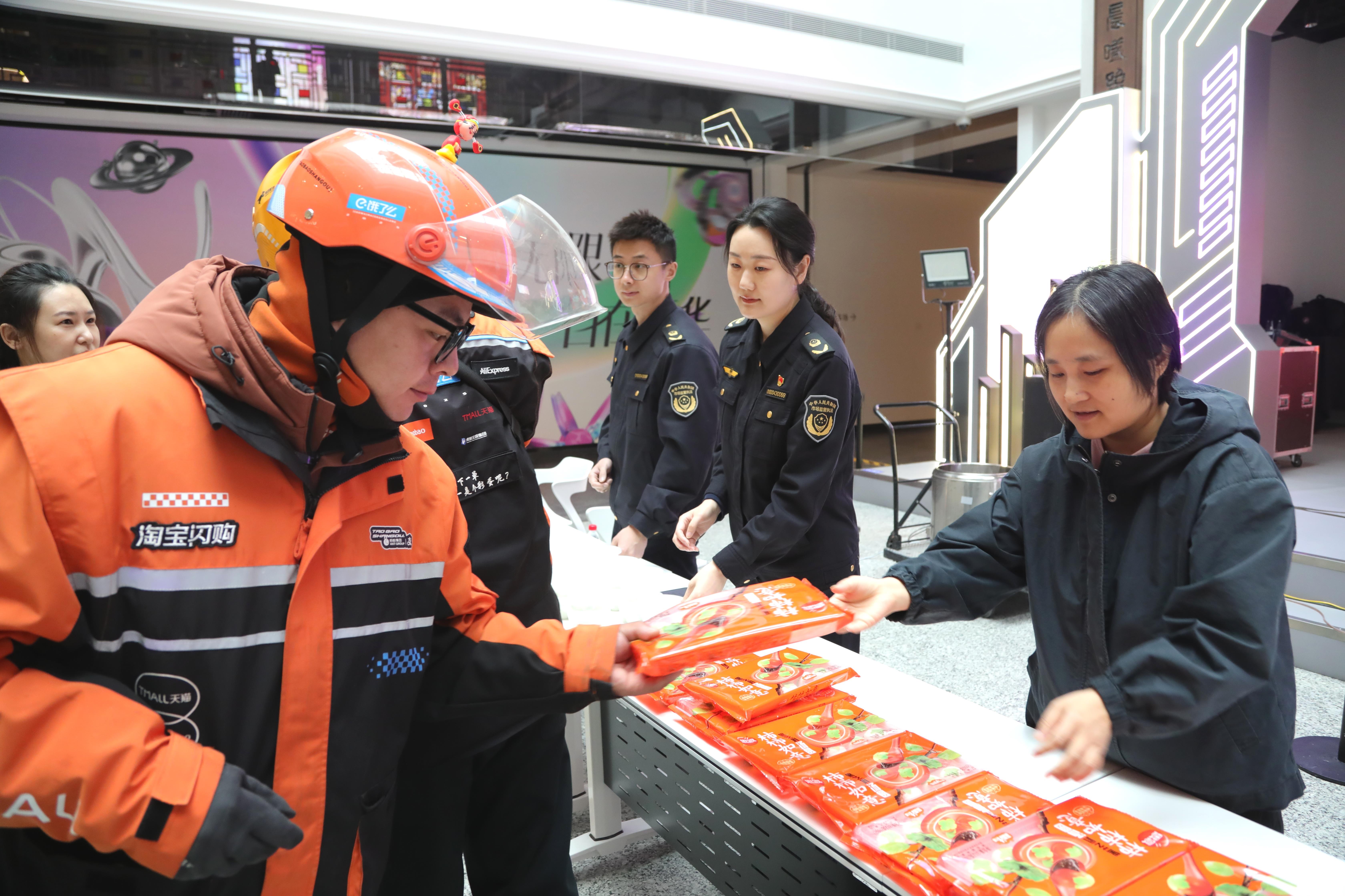外卖小哥领取元宵节礼物。董芳忠/摄