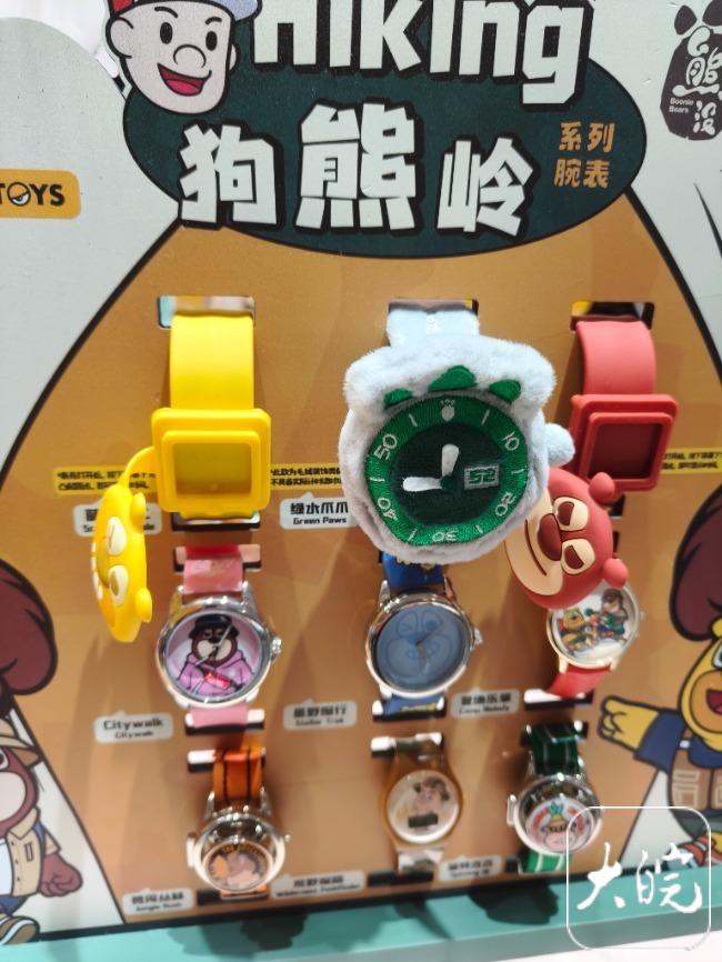 随后,记者也来到三里庵商圈的一家潮玩店,“这款熊出没的盲盒手表很受欢迎,周末有不少孩子专门来买。”店员表示,盲盒有9个常规款,1个隐藏款,售价30多元,表盘是熊出没中的IP,“除了看时间的功能,部分款表盘可以旋转,有趣味性。”