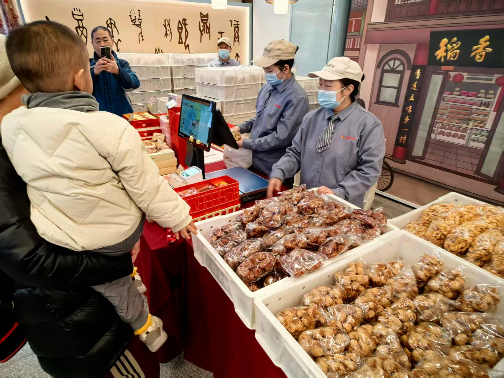 在店内,记者看到更多的是年轻面孔。据记者了解,该店是创新型门店,主打国潮风格,将青铜器造型、国潮IP与传统糕点结合,推出“文房四宝”糕点、盲盒玩法等,吸引年轻人前来打卡。