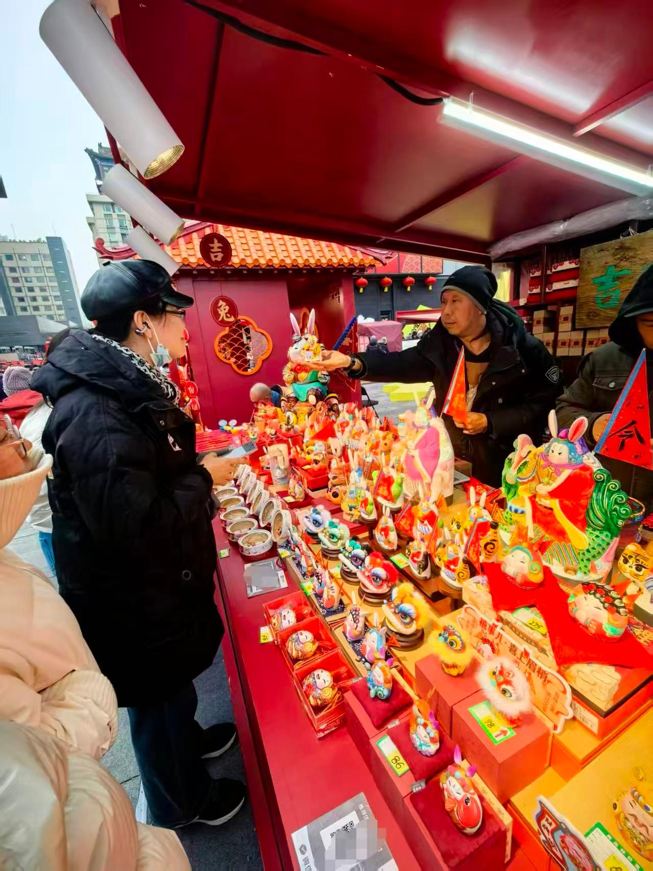 来自山西太原的游客张女士买了好几个兔儿爷摆件和“翻里花”挂件,小心翼翼装进背包:“这就是活的北京文化,比任何纪念品都有温度。把这份吉祥带回家,大人孩子肯定都喜欢。”