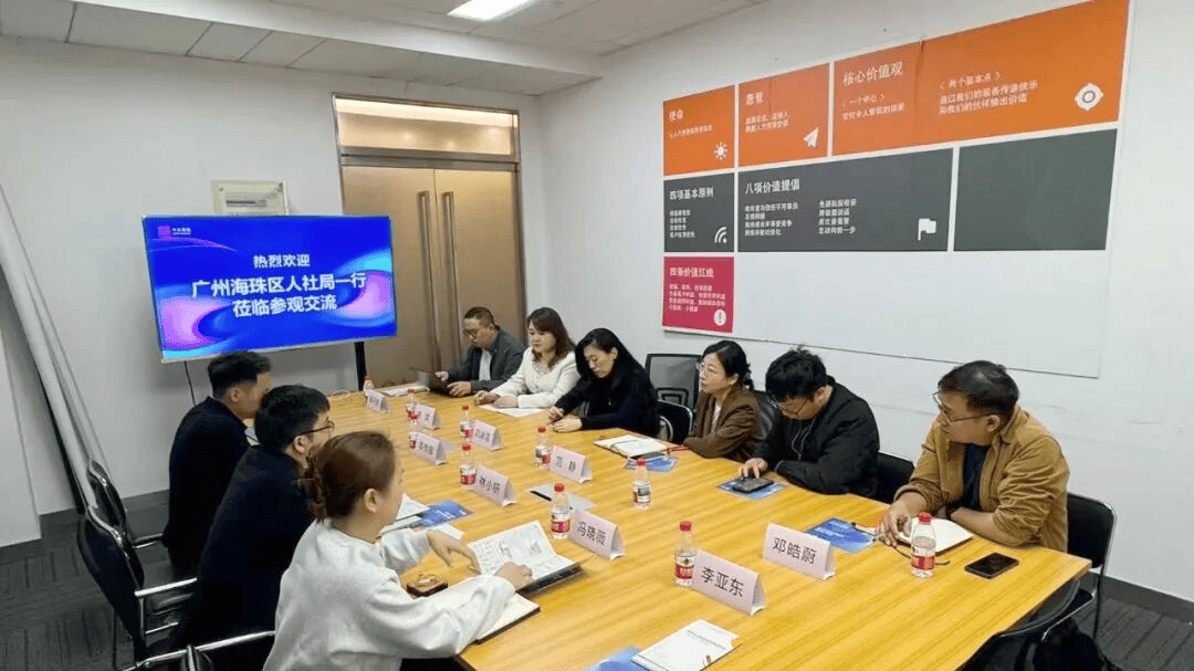 调研座谈中,海珠区人社局一行详细了解今元集团在粤港澳大湾区的业务布局规划、扩张发展需求与深度合作意向,重点推介海珠区人力资源服务业扶持政策、中国广州人力资源服务产业园海珠园区载体优势、产业集聚生态与配套服务,就企业落户支持、重点项目合作等事宜进行精准对接。双方一致认为,海珠区作为广州人工智能与数字经济试验区核心区,正全力打造粤港澳大湾区人才服务保障枢纽;今元集团在数字化、全球化人力资源服务领域具备领先优势,与海珠区产业发展方向、人才战略需求高度契合,合作空间广阔。