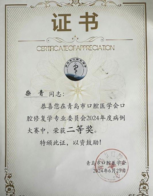 在守护患者健康的同时,柴青医生也凭借扎实的理论功底与出色的临床能力在行业赛事中屡获殊荣。