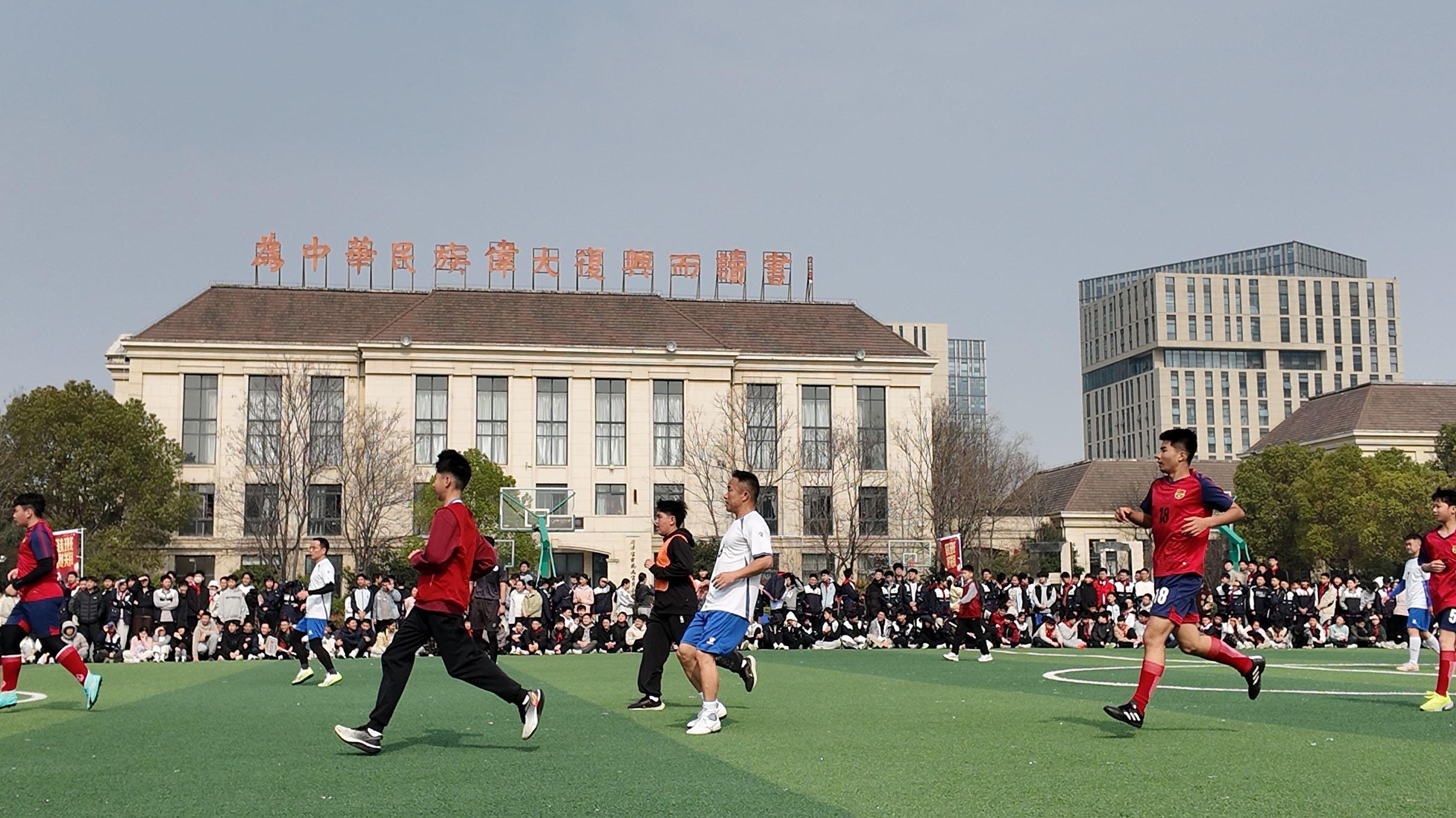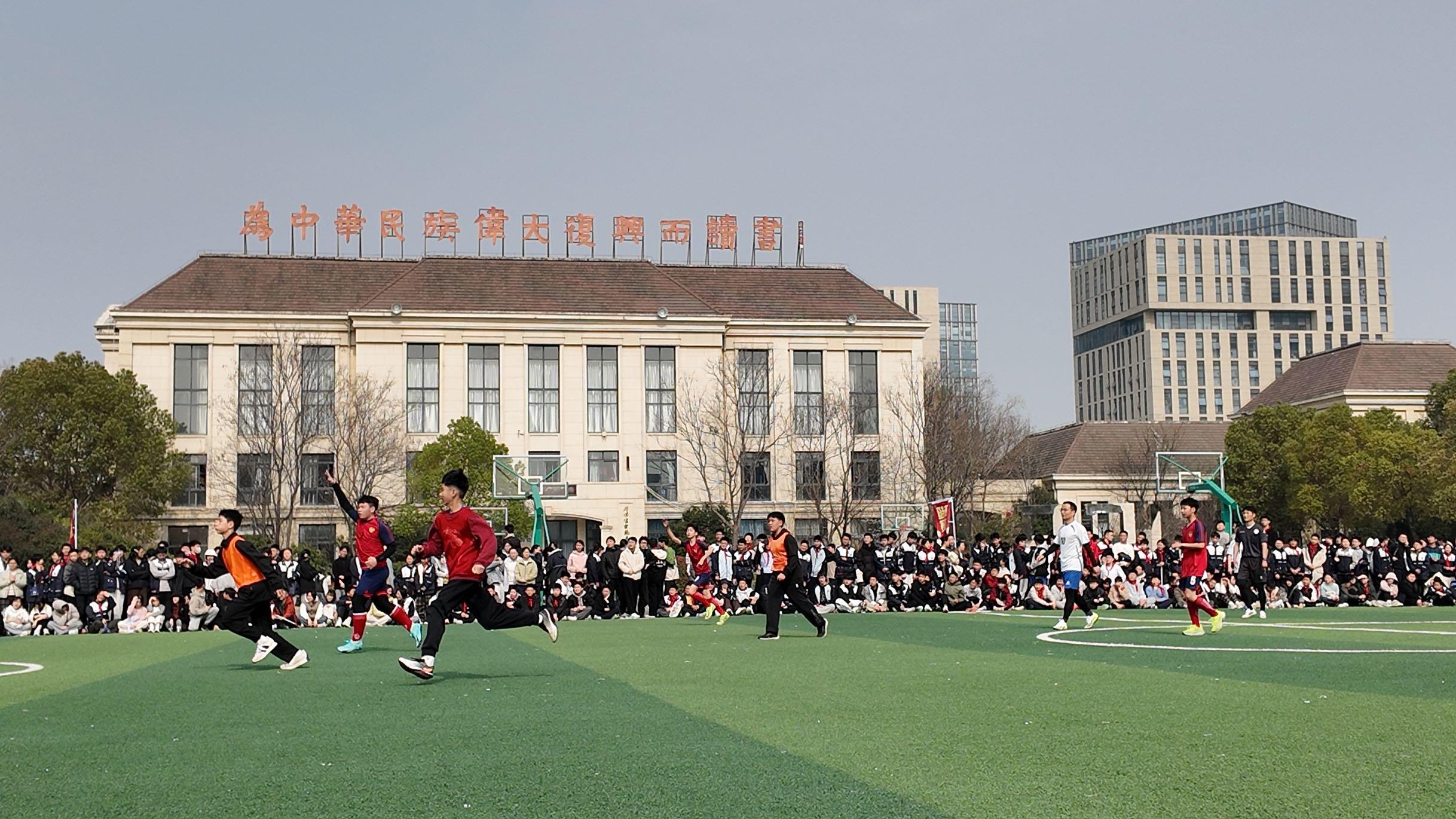合肥一六八玫瑰园学校首届校园班级足球超级联赛九龙校区揭幕赛现场。