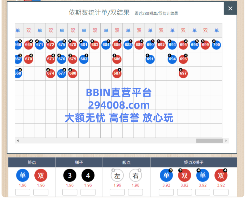 2、梯子游戏两门投法,低倍打法,从看中的数去买,两个里面只要中一个都不会出现亏本的情况,大大增加把握,如果两门都没看准也只是亏掉2把,两样看对就是3.94,相当于一个高倍的赔率,比起单挑一个高倍选择的余地要大很多,2门的买法,单双、还有左右,34条里面二选一,高倍2门就是,分析左右,看准是左边还是右边,如果是从左边出,结果只有2个单4和双3,中了也只有一个低倍的赔率,这也是付出和收获不成正比,所以还不如玩低倍2门,当然低倍对于规律的准确率就要求高一些。