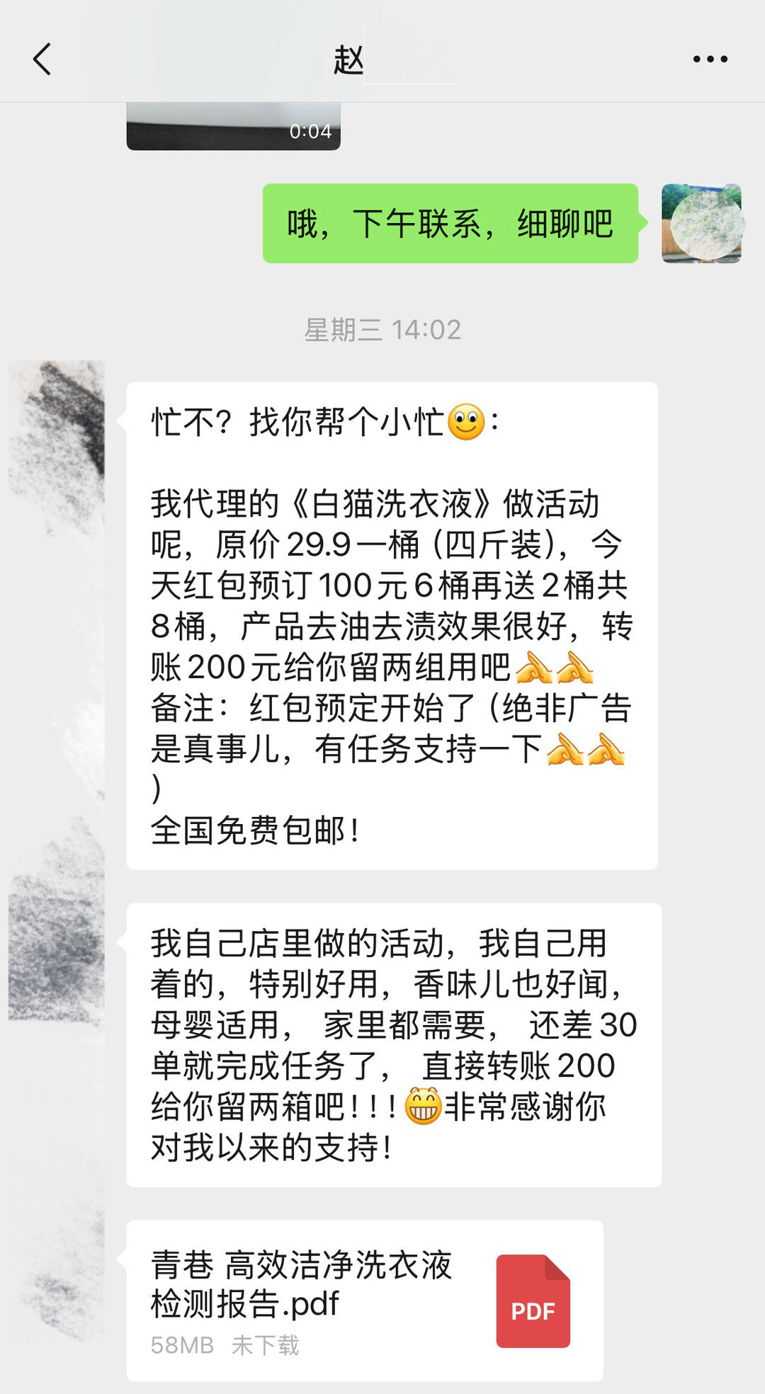 经销商发给记者群发话术和洗衣液检测报告