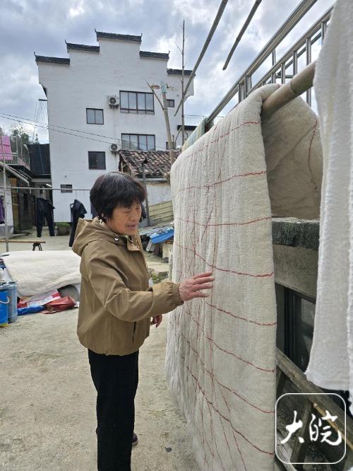 “今天太阳好,我把他床上的几床被子都拿出来晒晒。”3月28日下午,天气晴朗、春光温和,大皖新闻记者来到泾县蔡村镇爱民村,在村民袁金山的家门口,吴英正在帮他把晒在晾衣杆上的被子拍一拍灰尘、翻个边。这样简单的小事,吴英已经做了20多年。