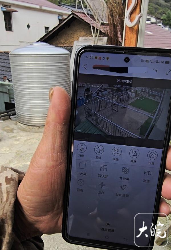 邱文化在屋后装了一个监控摄像头,哪怕不在家也能及时看到表兄家的情况。