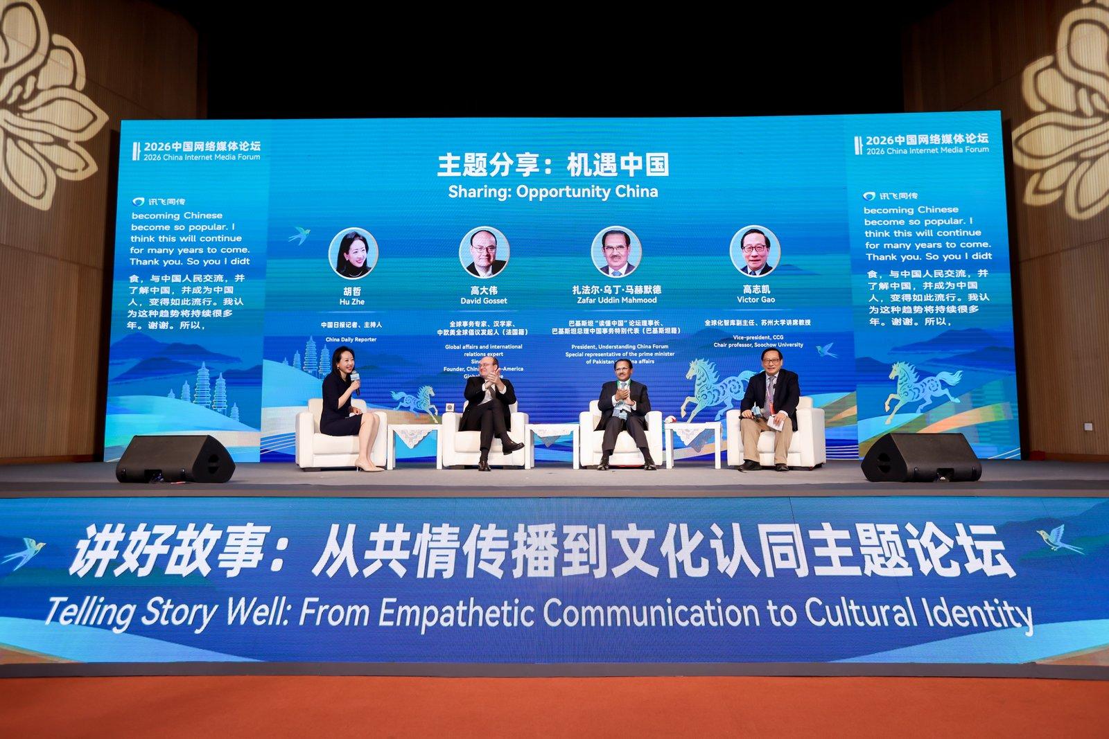 3月28日上午,2026中国网络媒体论坛——“讲好故事:从共情传播到文化认同”主题论坛在郑州举办。论坛以“故事演绎+主题分享”的形式,为来自世界各地的内容创作者搭建交流平台,多位嘉宾围绕“游”“购”“学”与“Becoming Chinese”,分享了他们眼中的“机遇中国”。
