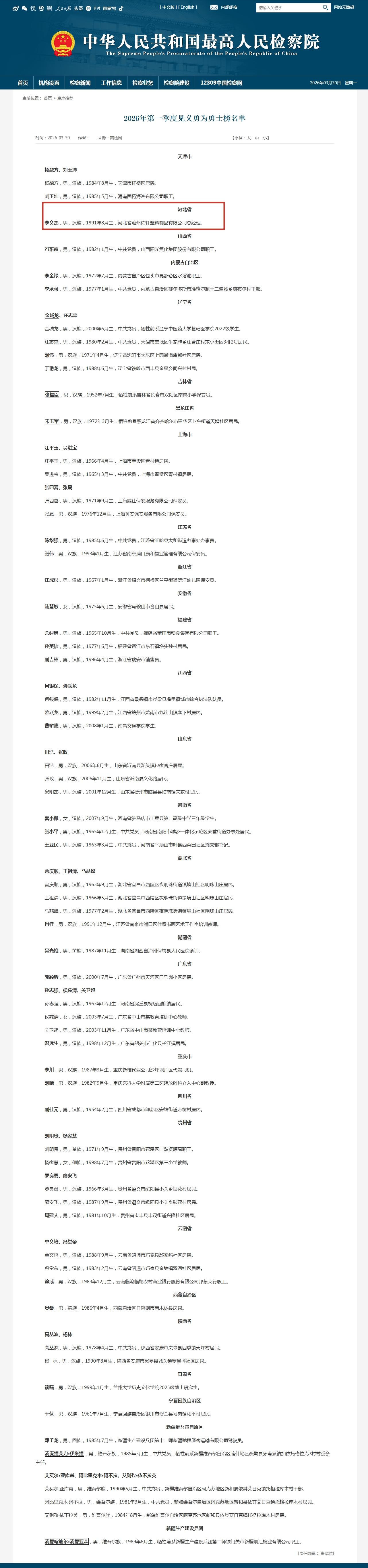 “河北1名勇士榜上有名!2026年第一季度见义勇为勇士榜公布” 的相关文章