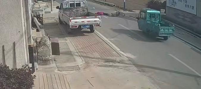 一段40多秒的监控视频显示,4月1日9时22分,谢老太在村道中骑自行车缓慢行驶,行至一处路口准备左转弯时,后方快速行驶的两轮电动车将其撞倒,然而事发后,两轮电动车主并未停车查看,而是径直驶离,留谢老太躺在马路中间。10秒钟后,不幸的事情再次发生,倒地不起的谢老太又遭驶来的三轮电动车碾压,三轮电动车驶出监控区域后,事发地附近的村民注意到这一情况并出门查看。