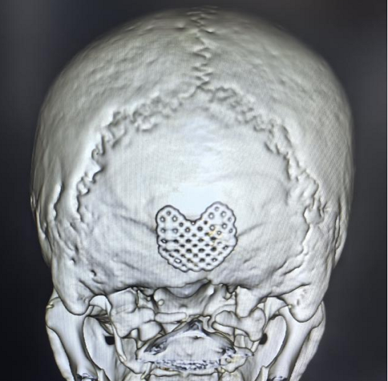 在与患者及家属充分沟通,详细告知病情、手术方案及潜在风险后,家属最终下定决心,选择接受手术治疗。在多学科团队的通力协作、密切配合下,由王连运、姬德成两位主任主刀,为库女士实施脑膜脑膨出切除术+颅骨缺损修补术。术中,两位主任凭借丰富的临床经验和精湛的手术技巧,精细操作、精准施策,历时2小时,成功将膨出的脑组织还纳,切除膨出脑膜,严密修补硬脑膜,同时完美修补颅骨缺损,有效杜绝了脑脊液漏等并发症的发生。术后7天,库女士康复出院。