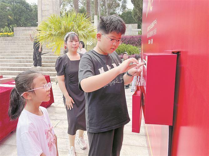 烈属将信件投入“时光信箱”。(厦门日报记者 罗子泓 摄)