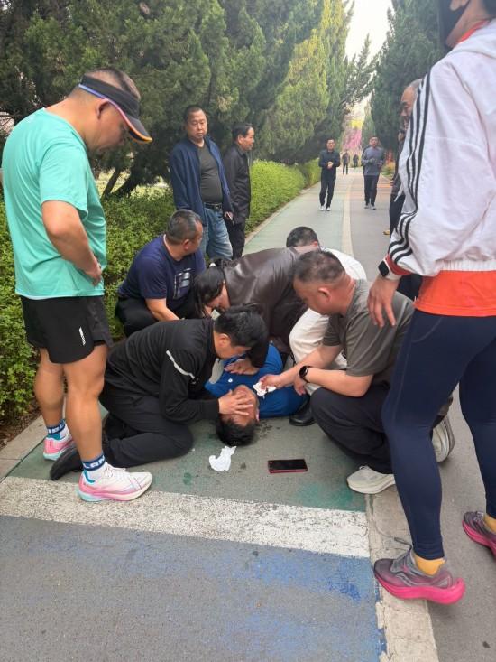 3月29日清晨,一名45岁的晨跑男子突发心脏骤停、倒地昏迷,危急时刻,路过的专业护士、热心跑友和迅速到位的医生联手展开接力抢救,成功将他从死亡线上拉了回来。路过的急诊科护士彭敏没有丝毫的犹豫,果断实施心肺复苏,从事医药行业工作的韩风生从旁协助进行人工呼吸,从事消防维护工作的退役军人张磊第一时间拨打了120,并主动跑到路口引导救护车。整个救援过程紧张有序、争分夺秒,为后续的急诊抢救争取了宝贵的时间,每一个举动都充满了对生命的敬畏与守护。事后,彭敏平静的说着:“我干这一行,遇到这种事情,肯定义无反顾地去救人。”