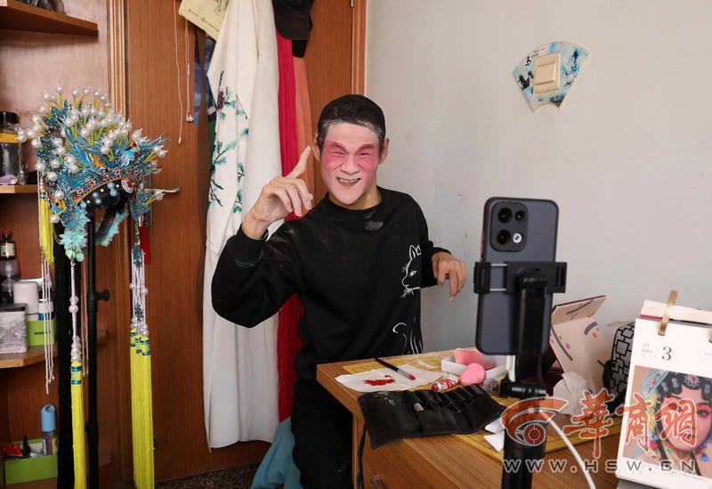 如今的郭家源,早已不是那个自卑封闭的少年。他能独立完成戏曲化妆和戏服穿戴,能流畅演绎《游园惊梦》《赤壁怀古》等戏曲的经典唱段,他还走进校园、社区,用自己的经历学习和表演,传播昆曲之美。这两年他还开通网络直播,账号为名为“公子倾玉(励志版)”,每天要在抖音、视频号等多个平台直播。