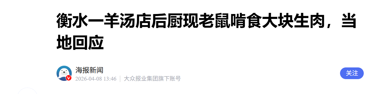 “衡水一羊汤店后厨现老鼠啃食大块生肉,当地回应” 的相关文章