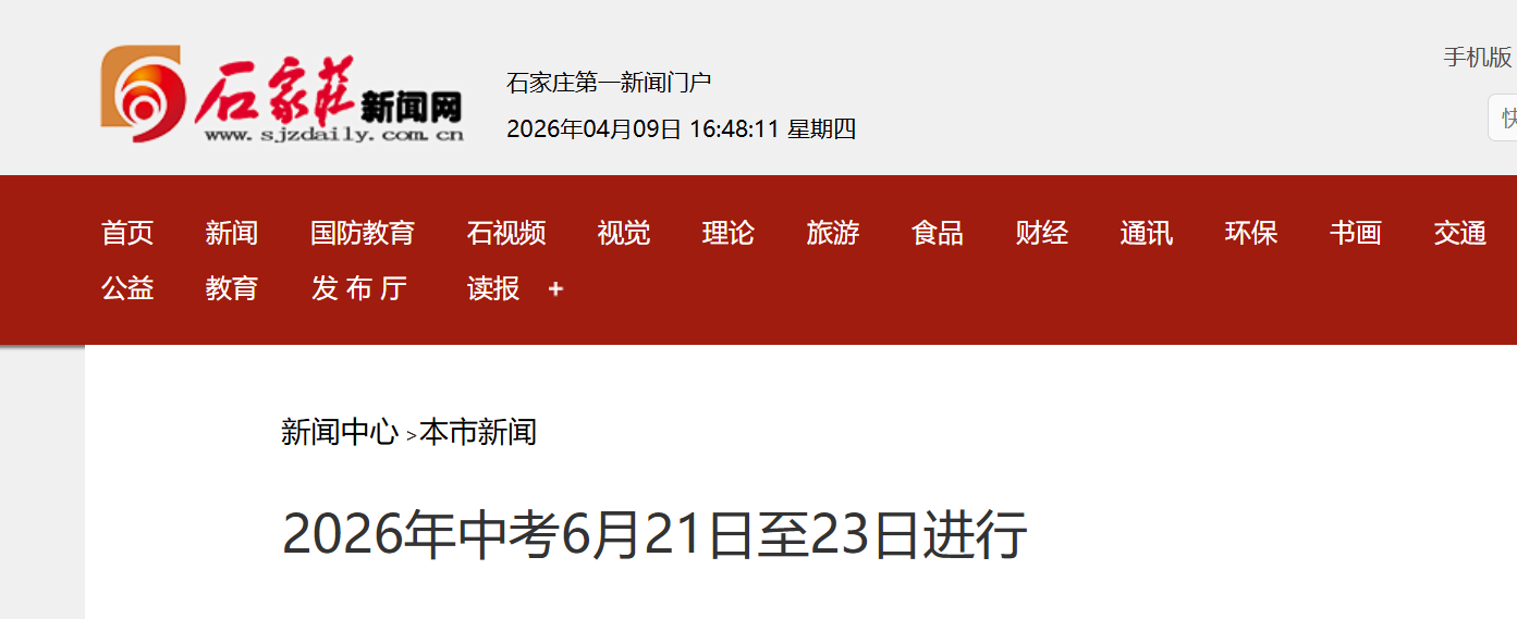 为切实做好2026年全省初中学业水平考试工作,确保考试安全、有序、平稳实施,河北省教育厅日前发布关于做好2026年初中学业水平考试工作的通知,明确笔试考试时间为6月21日至23日。