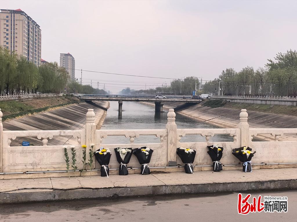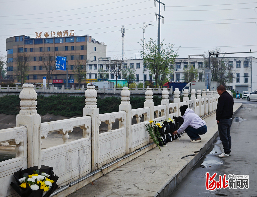 4月9日,天空阴沉,石家庄晋州市石津灌渠跨渠大桥上摆放着一束束菊花。微风拂过,花瓣轻颤,寄托着百姓对三位勇士的深切缅怀。就在前一日,中共晋州市委政法委发布《见义勇为公示》,拟确认参与救人牺牲的徐闯、赵天源2人为见义勇为行为人,公示期为2026年4月9日至4月23日。辅警马秋诗的因公殉职相关手续也正在办理中。