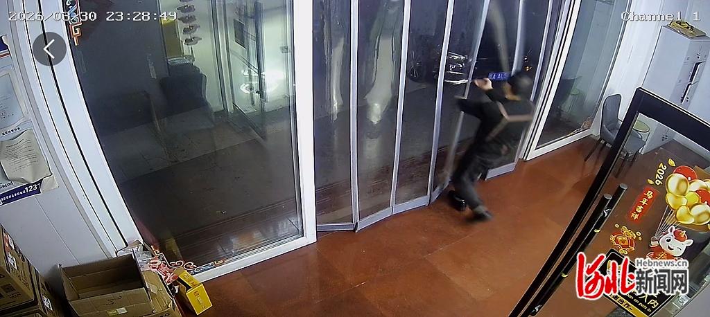 3月30日晚,徐闯听到呼救声离开店铺的监控画面。赵鹏供图